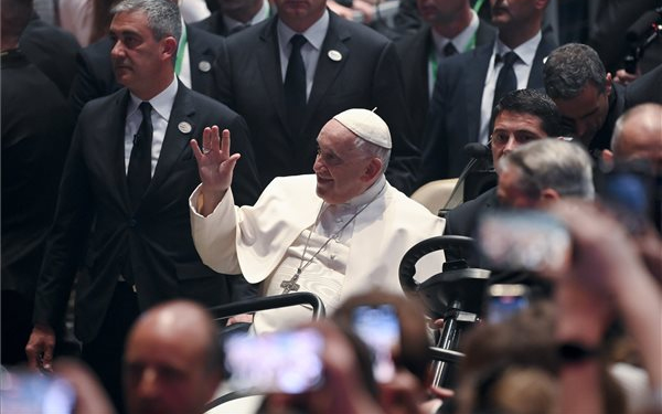 A pápa hangoztatta, fájdalommal gondol a palesztinok lakta Gázai övezetre, az elhunyt gyermekekre, iskolák és kórházak bombázására. "Mennyi kegyetlenség!" - ismételte meg többször.
